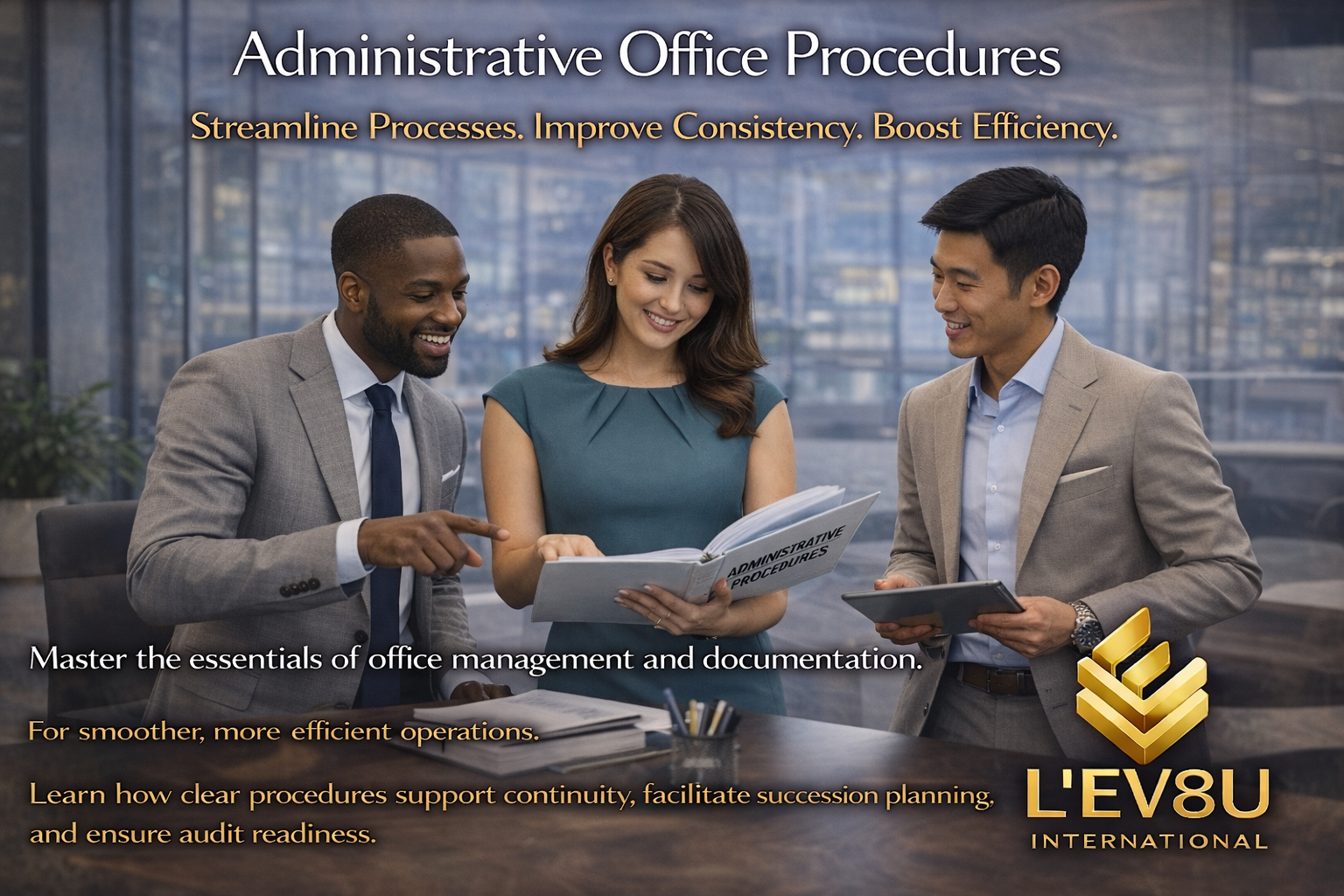 Administrative Office Procedures provides participants with a clear understanding of how an Administrative Office Procedures binder demonstrates professionalism, organization, and operational efficiency. Participants will learn how documented procedures serve as a critical link between an organization’s vision and its day-to-day operations, while also supporting continuity, succession planning, and audit readiness.